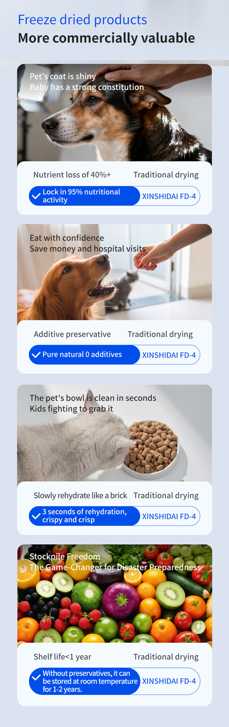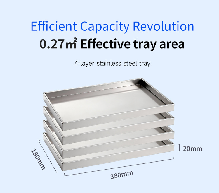 Модель XSD-FD-4 Процессор 3-4 кг Зона сублимационной сушки 0,27 м 2 Температура холодной ловушки -45°С Температура раздела 0°С—80℃ Установленная мощность 1кВт Общий вес машины 118 кг Зафиксировать объем воды 4 кг Количество слоев раздела 4 1 Слои Расстояние между перегородками 55 мм Общий вид Квадратный интегрированный Размеры лотка для материала 180x380 (мм) Габаритные размеры 660x600x550(мм)